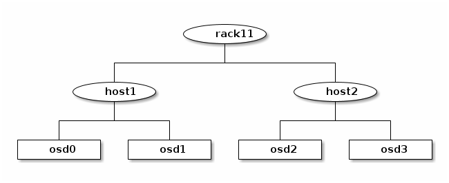 In the following example, the CRUSH hierarchy has osd leaf buckets