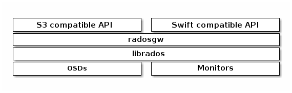 Ceph Block device clients. The S3 API and the Swift API share a common